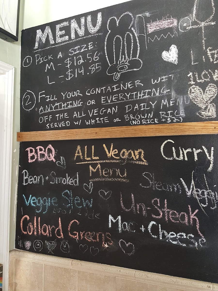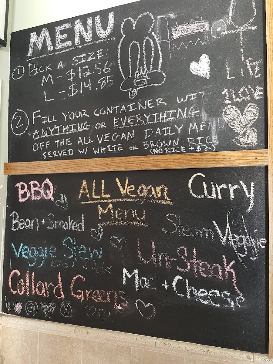 100% Vegan platter with options of one protein, two sides and a brown/ white rice base.
