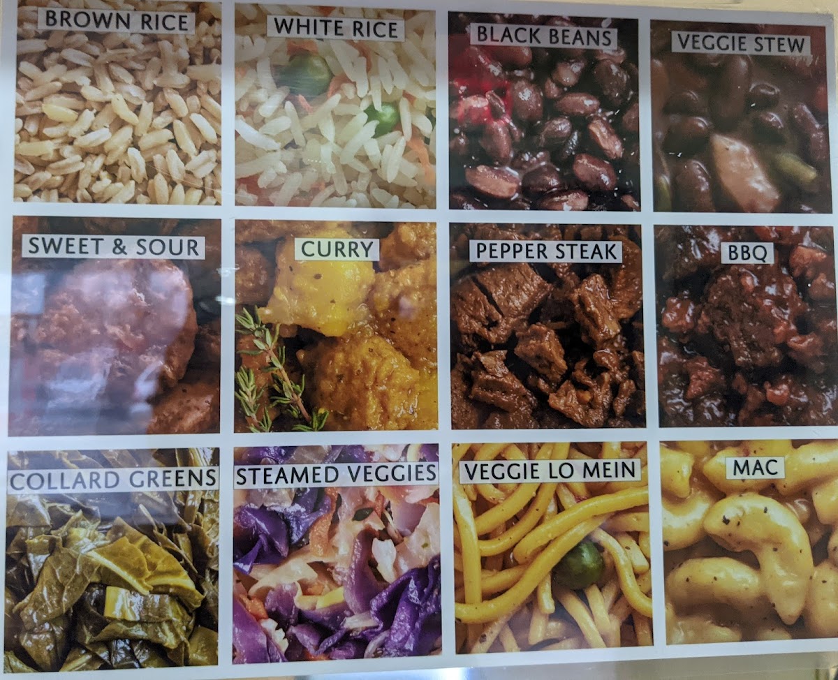 Large 100% vegan dish with the option of 2 proteins and 3 sides. Comes with a base of your choice brown rice or white veggie rice.